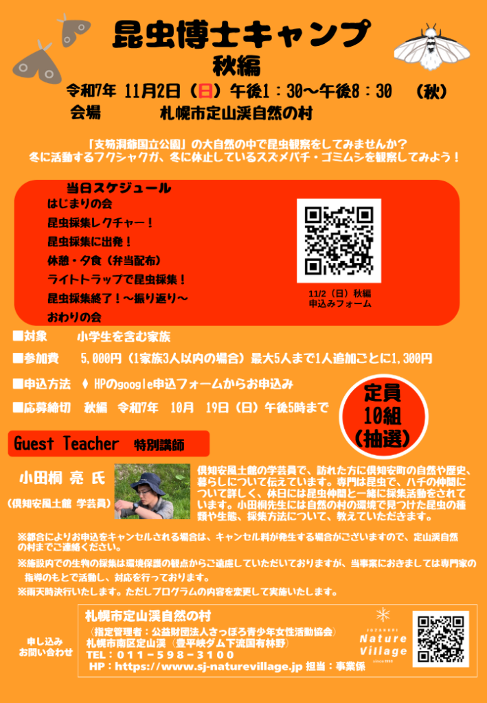 札幌市定山渓自然の村 > イベント > 昆虫博士キャンプ 秋編