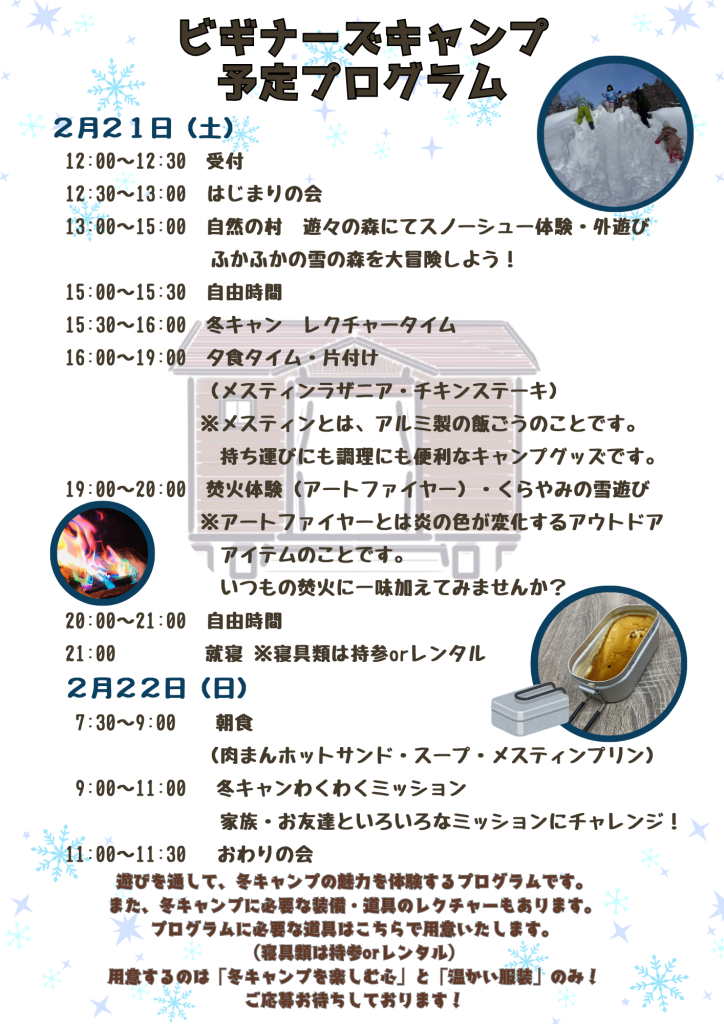 「キャンプをやったことはあるけど、冬キャンプは未経験・・・」というご家族は、ぜひご応募ください。